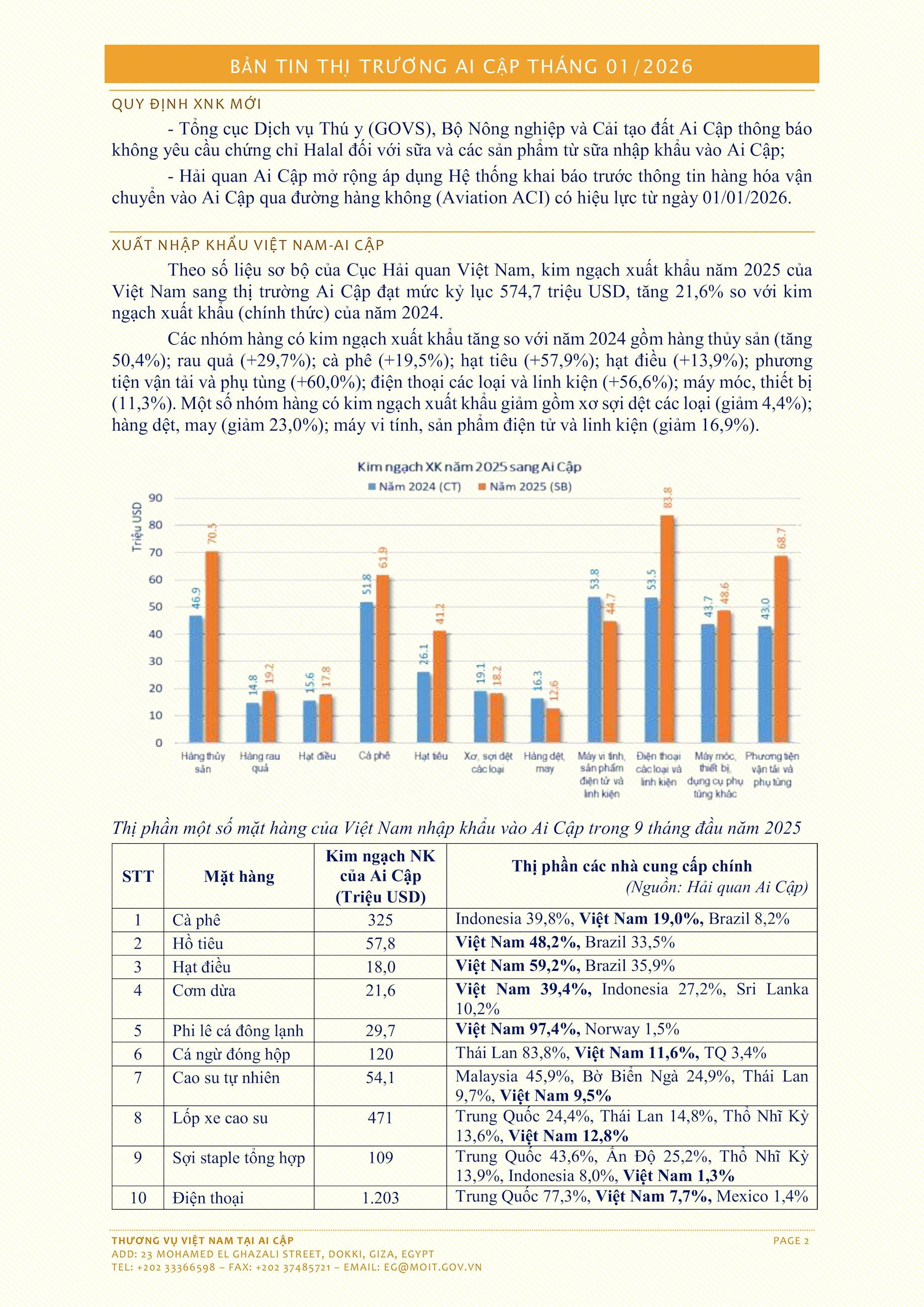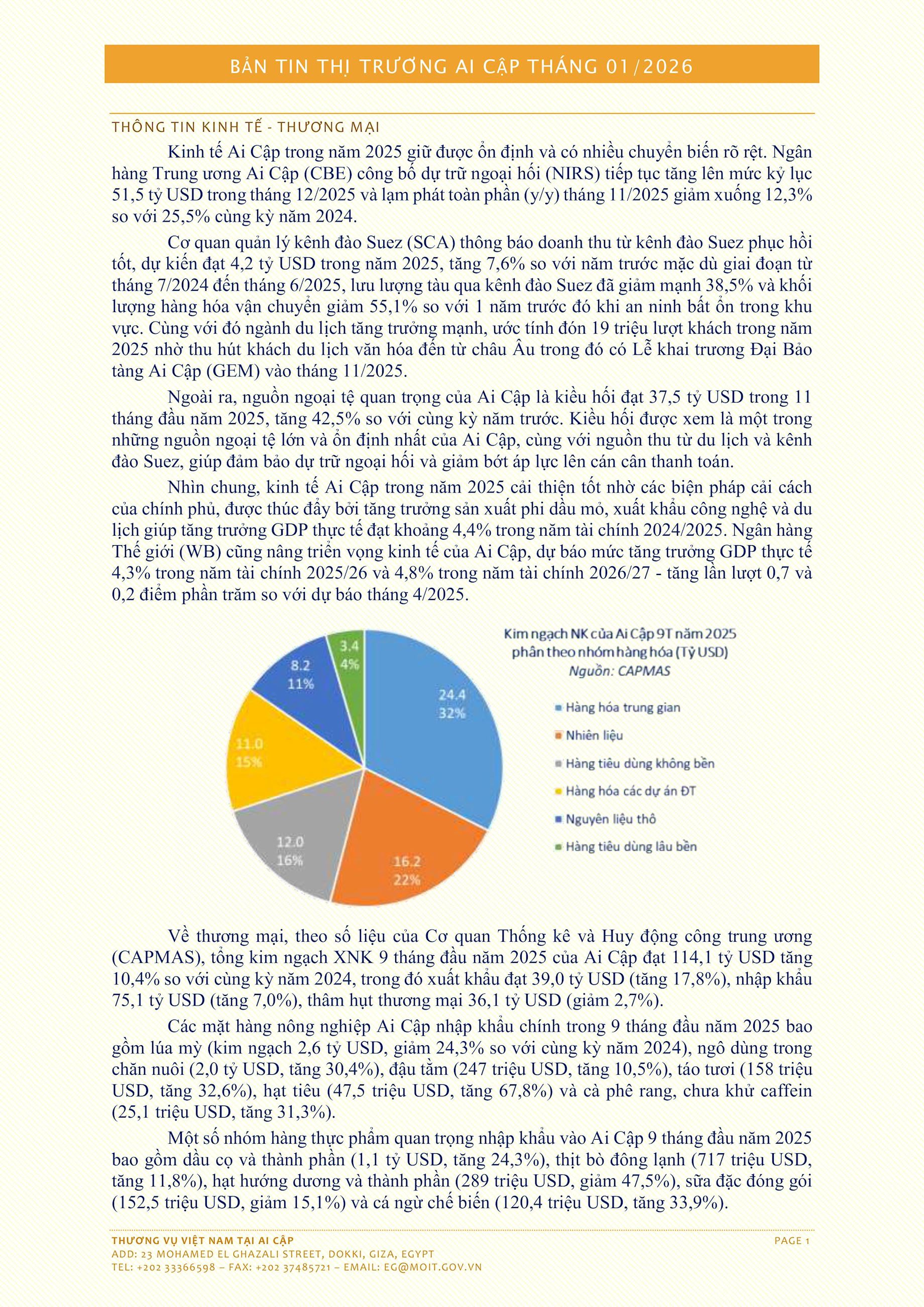Bản tin thị trường Ai Cập tháng 01 năm 2026