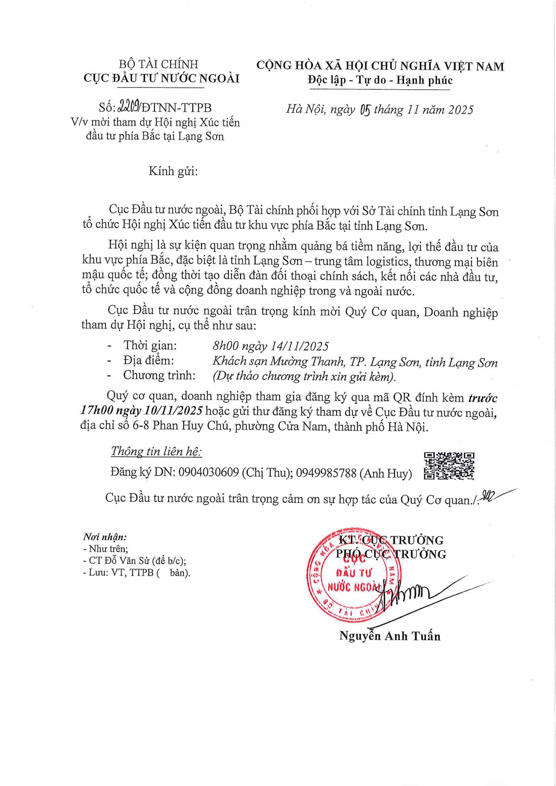 Mời tham dự Hội nghị Xúc tiến đầu tư phía Bắc tại Lạng Sơn