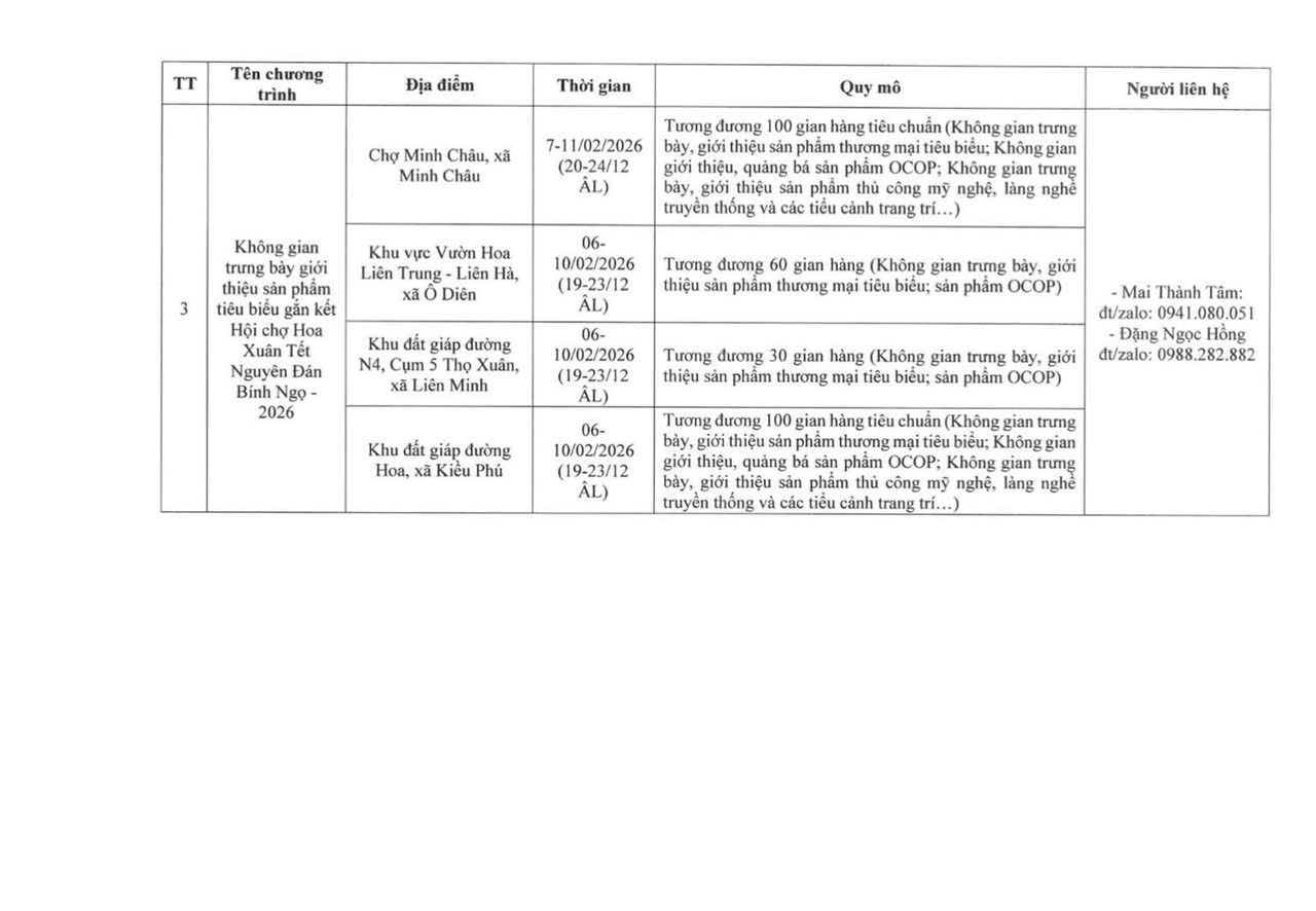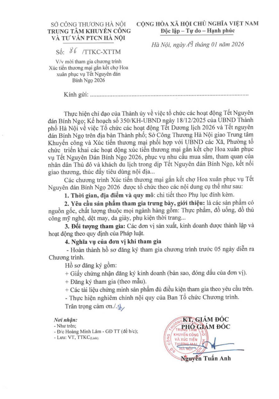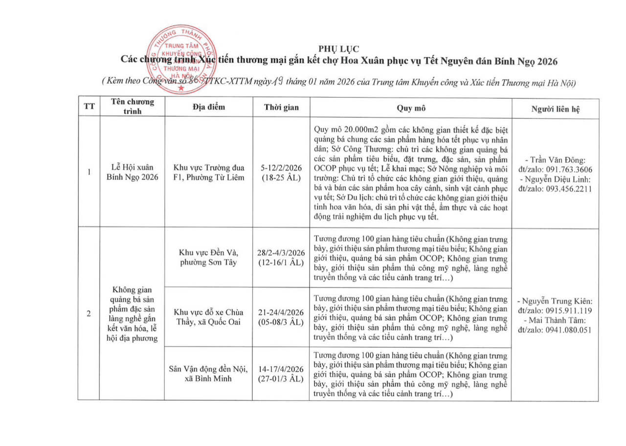 Mời tham gia chương trình Xúc tiến thương mại gắn kết chợ hoa xuân phục vụ Tết Nguyên đán Bính Ngọ 2026