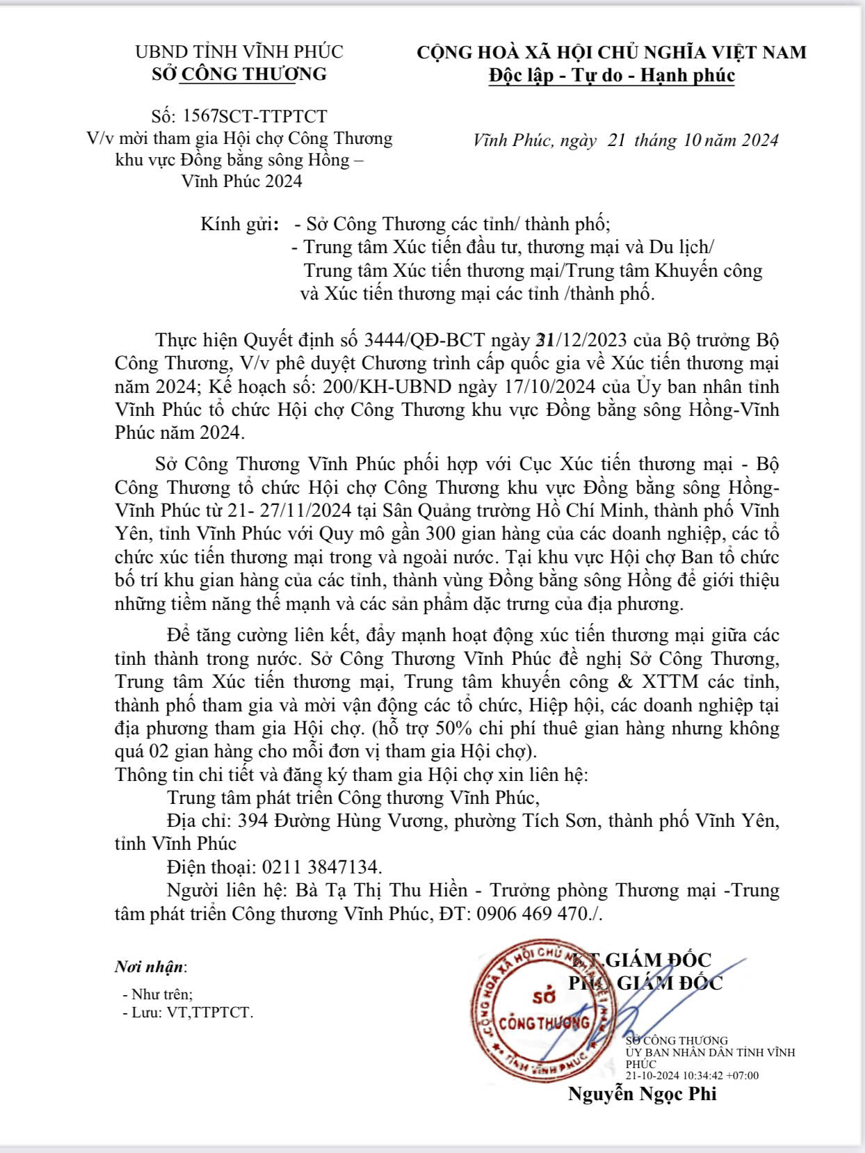 Mời tham gia Hội chợ Công Thương khu vực Đồng bằng sông Hồng – Vĩnh Phúc 2024