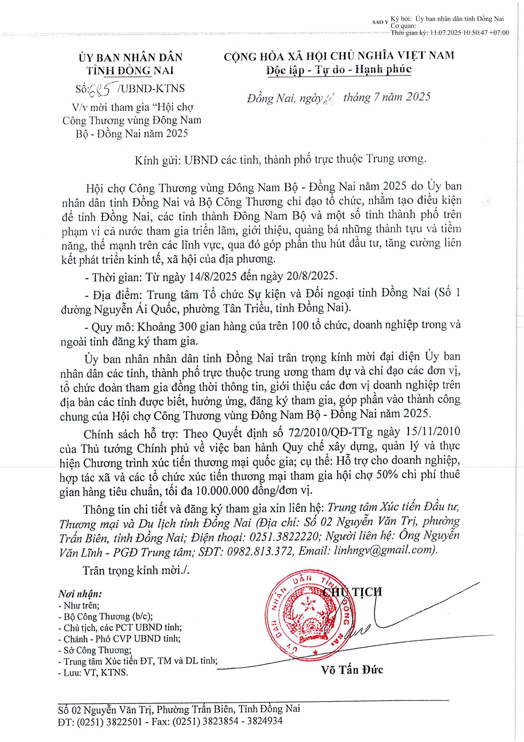 Mời tham gia Hội chợ Công Thương vùng Đông Nam Bộ - Đồng Nai 2025