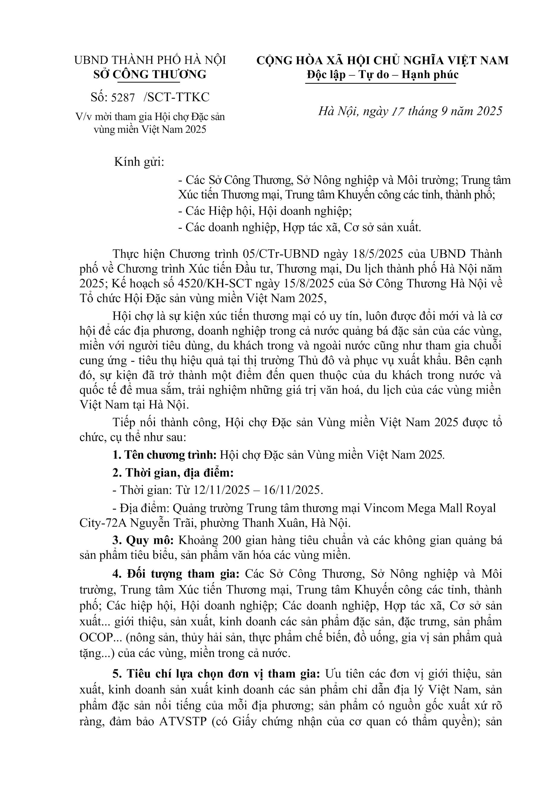 Mời tham gia Hội chợ Đặc sản vùng miền Việt Nam 2025