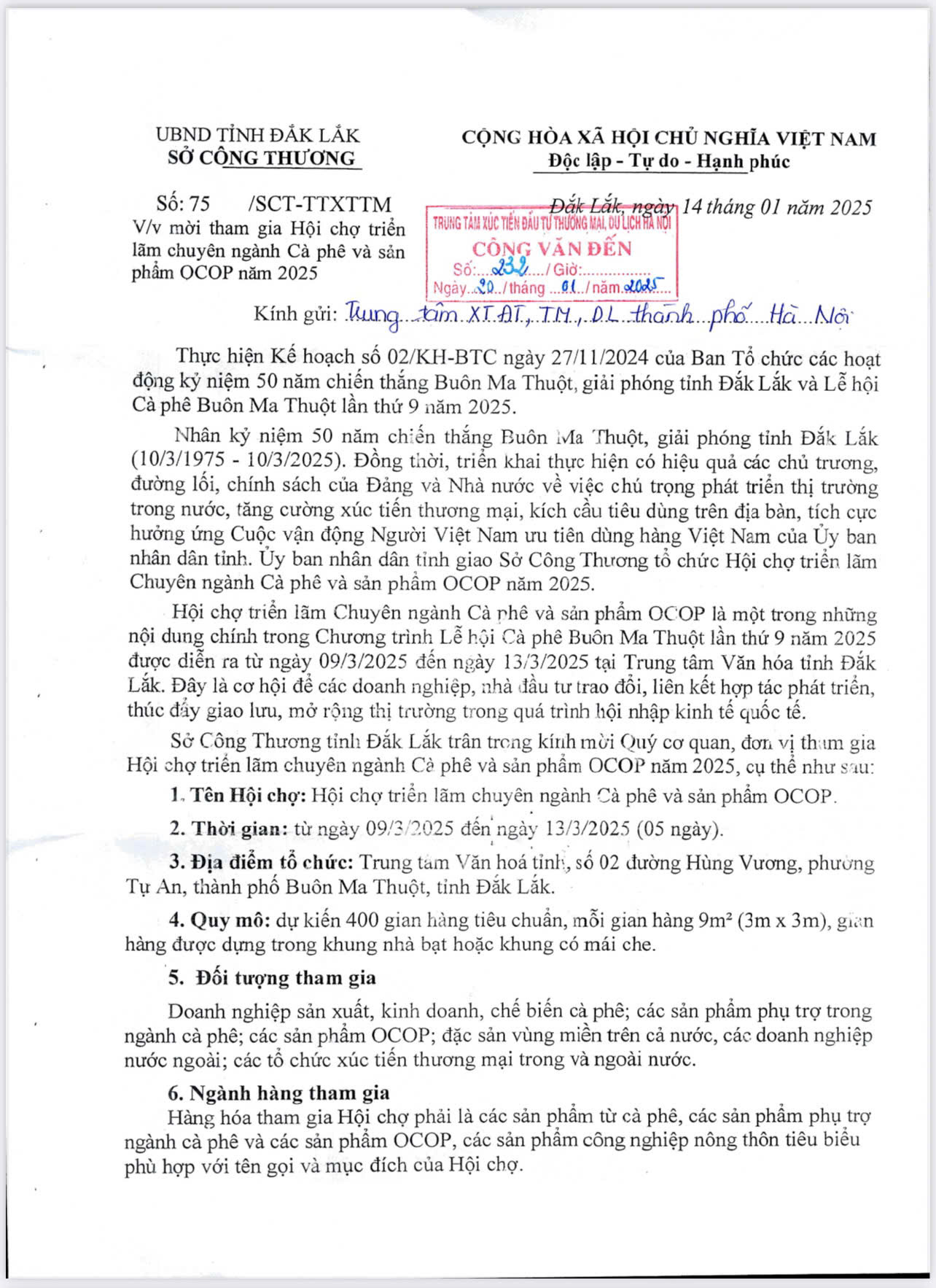 Mời tham gia Hội chợ triển lãm chuyên ngành Cà phê và sản phẩm OCOP năm 2025