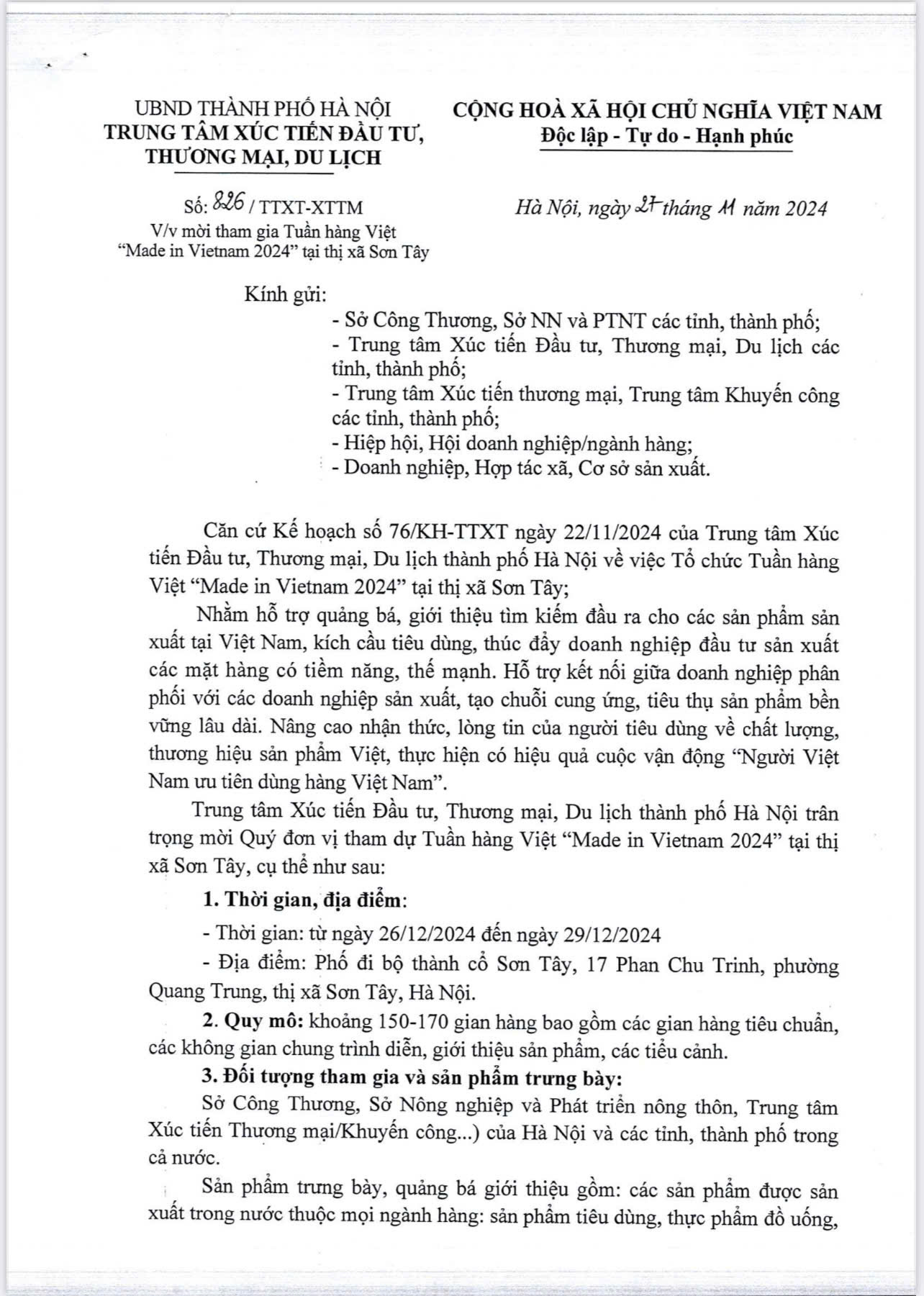 Tuần hàng Việt "Made in Vietnam 2024" tại thị xã Sơn Tây, Hà Nội