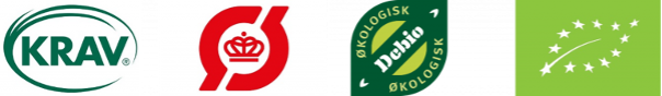 Nhãn hữu cơ từ Thụy Điển (KRAV), Đan Mạch (đỏ Ø), Na Uy (Debio Ø) và logo EU