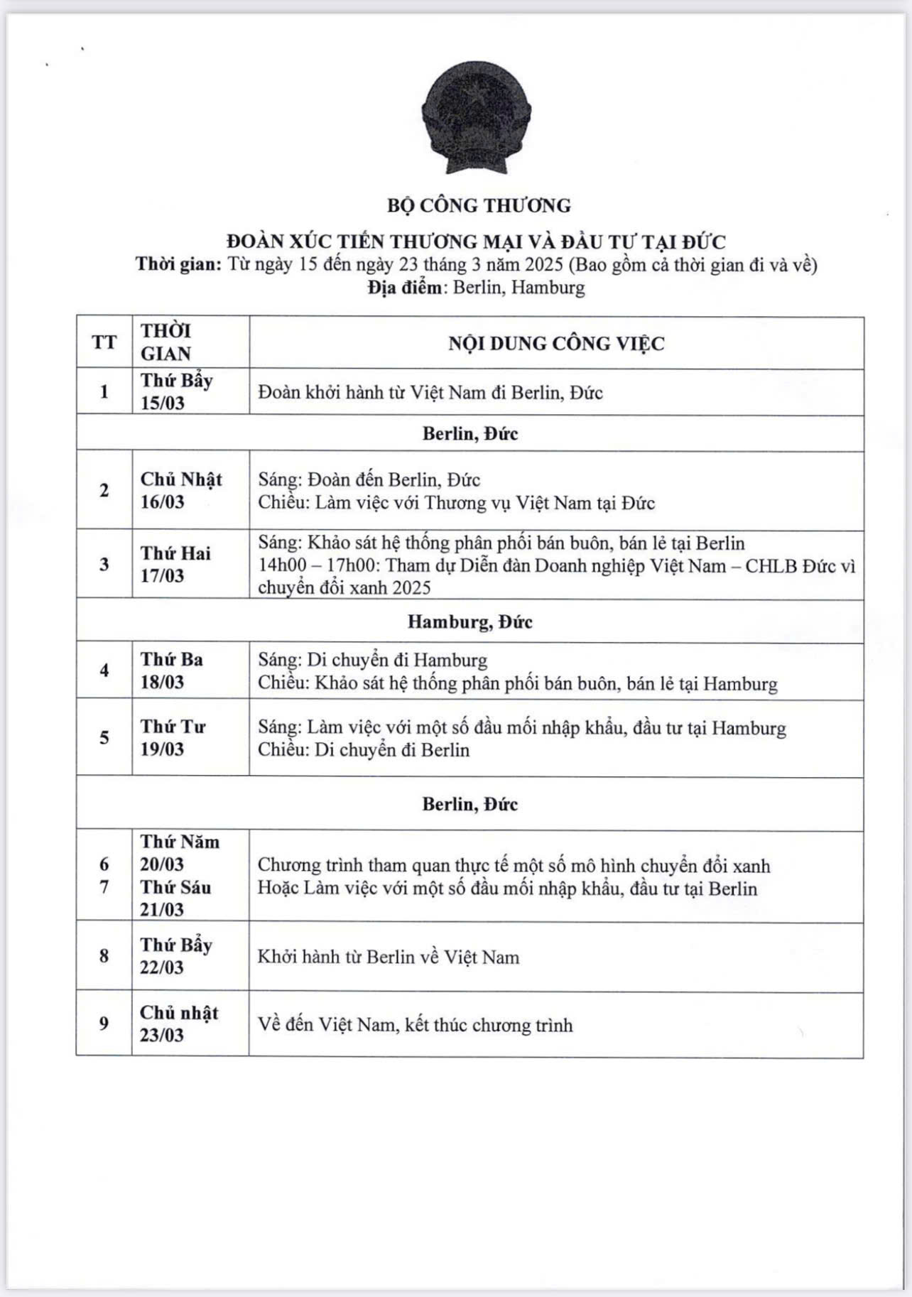 Tổ chức đoàn xúc tiến thương mại và đầu tư tại Đức