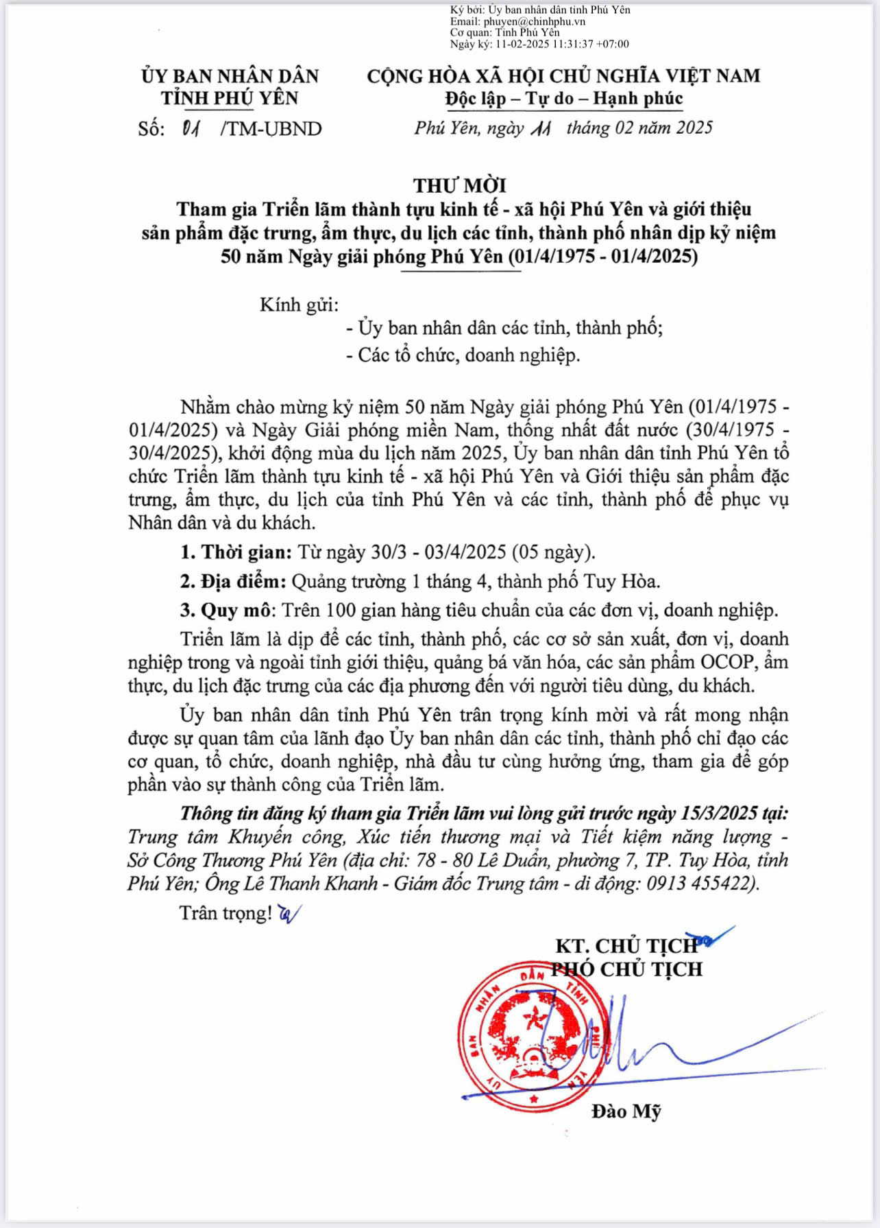 Triển lãm thành tựu kinh tế - xã hội Phú Yên và giới thiệu sản phẩm đặc trưng, ẩm thực, du lịch các tỉnh, thành phố nhân dịp kỷ niệm 50 năm Ngày giải phóng Phú Yên (01/4/1975-01/4/2025)