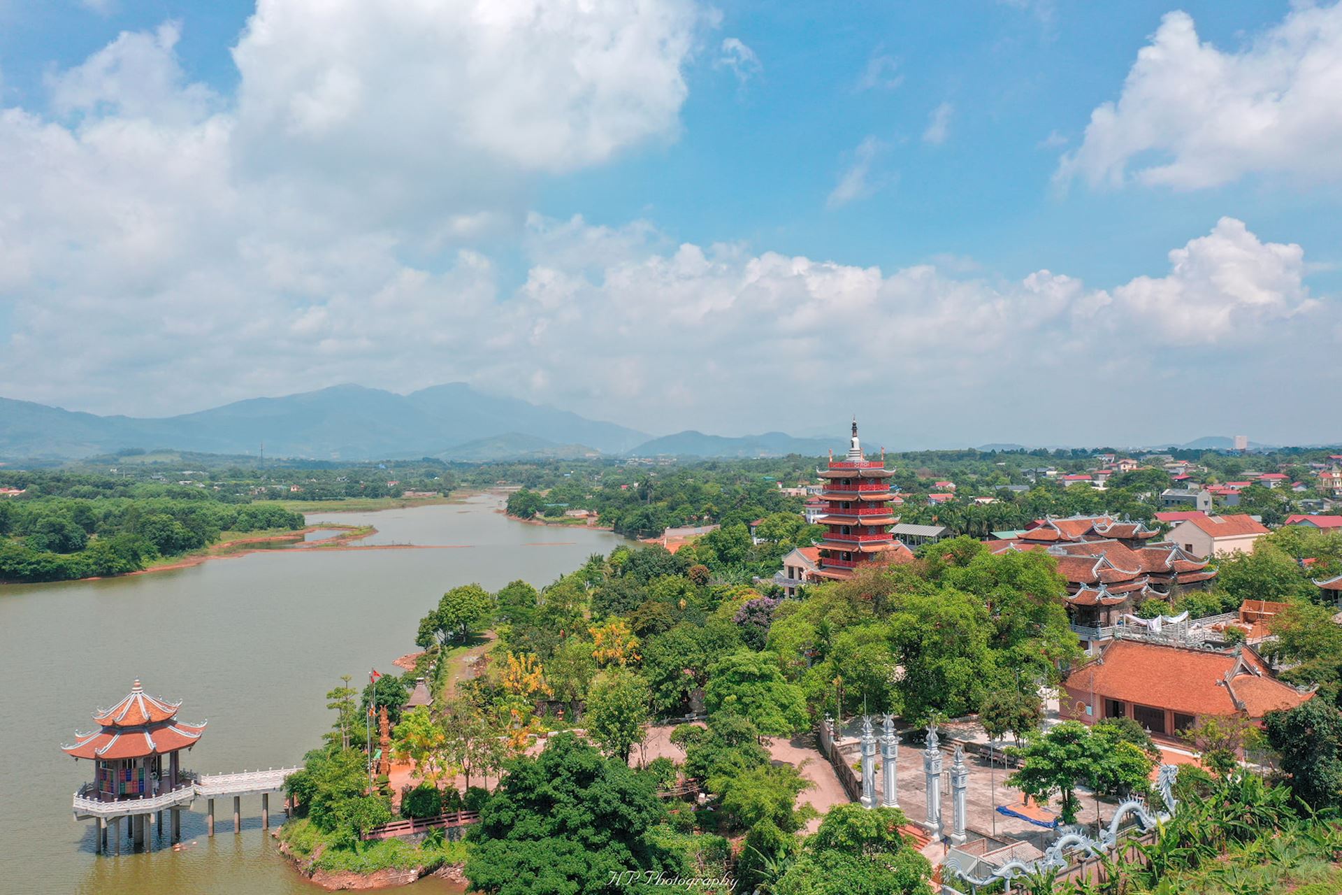 Chùa nằm trên đồi cao, nghiêng mình soi bóng bên hồ nước trong xanh có từ thưở sơ khai của tạo hóa. Mặt tiền chùa xoay hướng Đông Nam, nhìn ra ngọn Miếu Môn như bức tranh tuyệt đẹp vùng sơn cước. Bên phải là núi Voi, thuộc dãy núi Ba Vì nơi lưu giữ huyền thoại Sơn Tinh, Thủy Tinh trên đỉnh Tản Viên hùng vĩ. Bên trái là sông Tích hiền hòa mang phù sa từ dòng sông Hồng đêm ngày tưới mát những cánh đồng. Sau lưng trông xa là ngọn núi Thầy (núi Sưa) nơi tu hành và thị tịch của vị danh Tăng nhà Lý – Thiền sư Từ Đạo Hạnh.