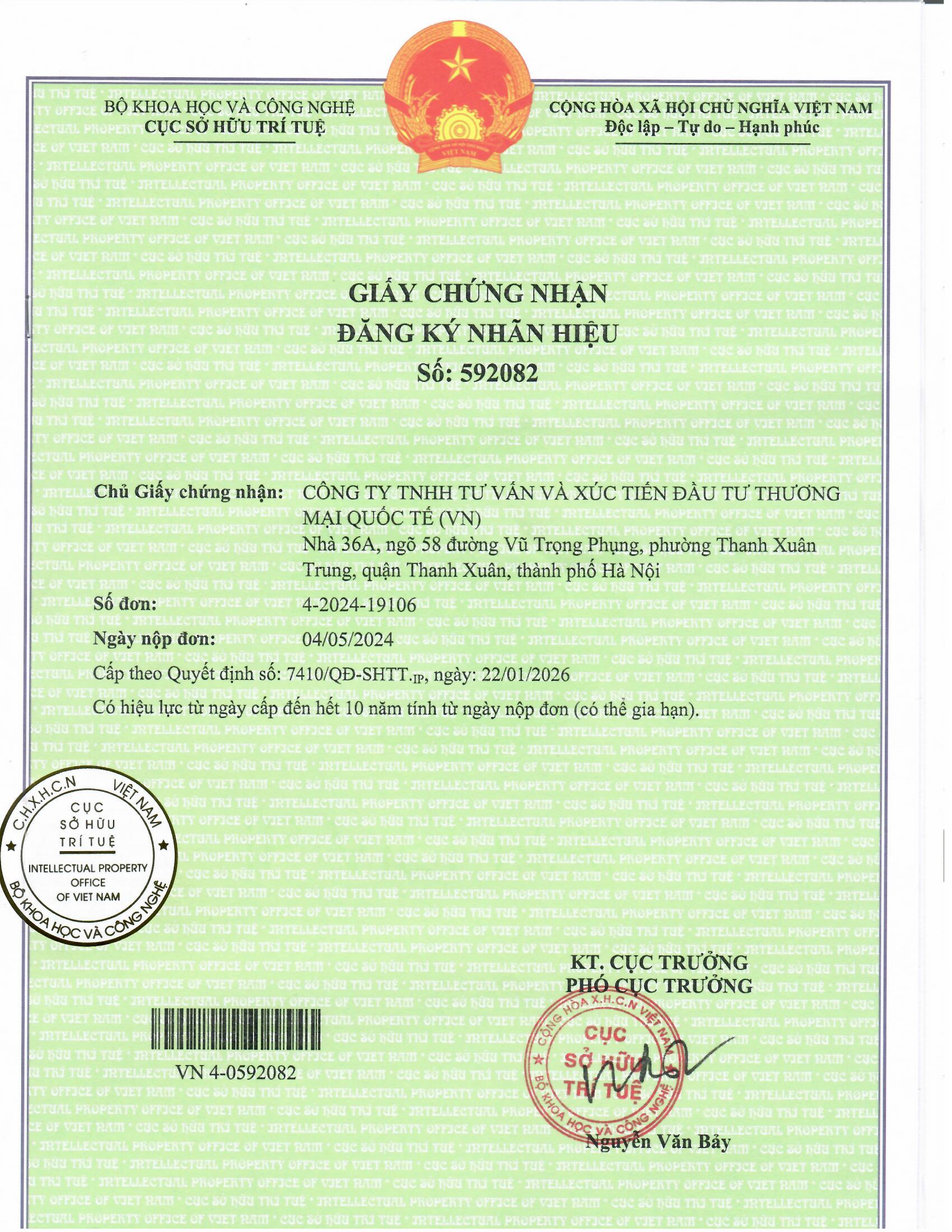 Biểu tượng (Logo) công ty (Giấy chứng nhận đăng ký nhãn hiệu số: 592082, cấp theo Quyết định số: 7410/QĐ-SHTT.IP ngày 22/01/2026 của Cục Sở hữu Trí tuệ - Bộ Khoa học và Công nghệ).